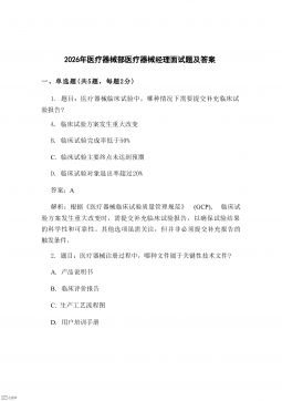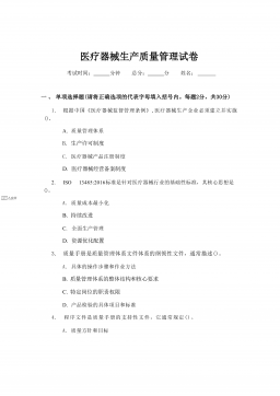 中华人民共和国医疗器械管理法 培训试卷及参考答案