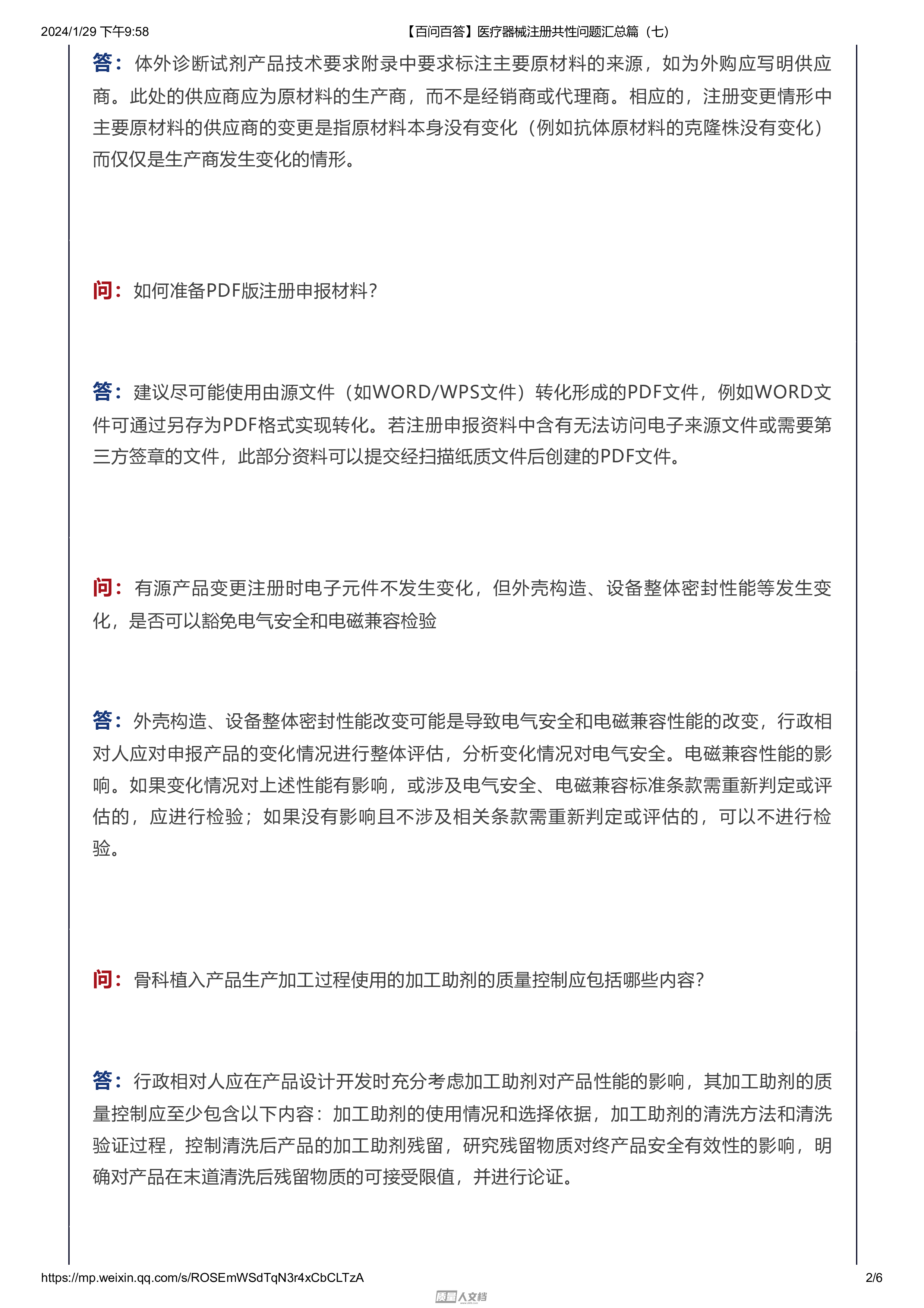 【百问百答】医疗器械注册共性问题汇总篇(七)