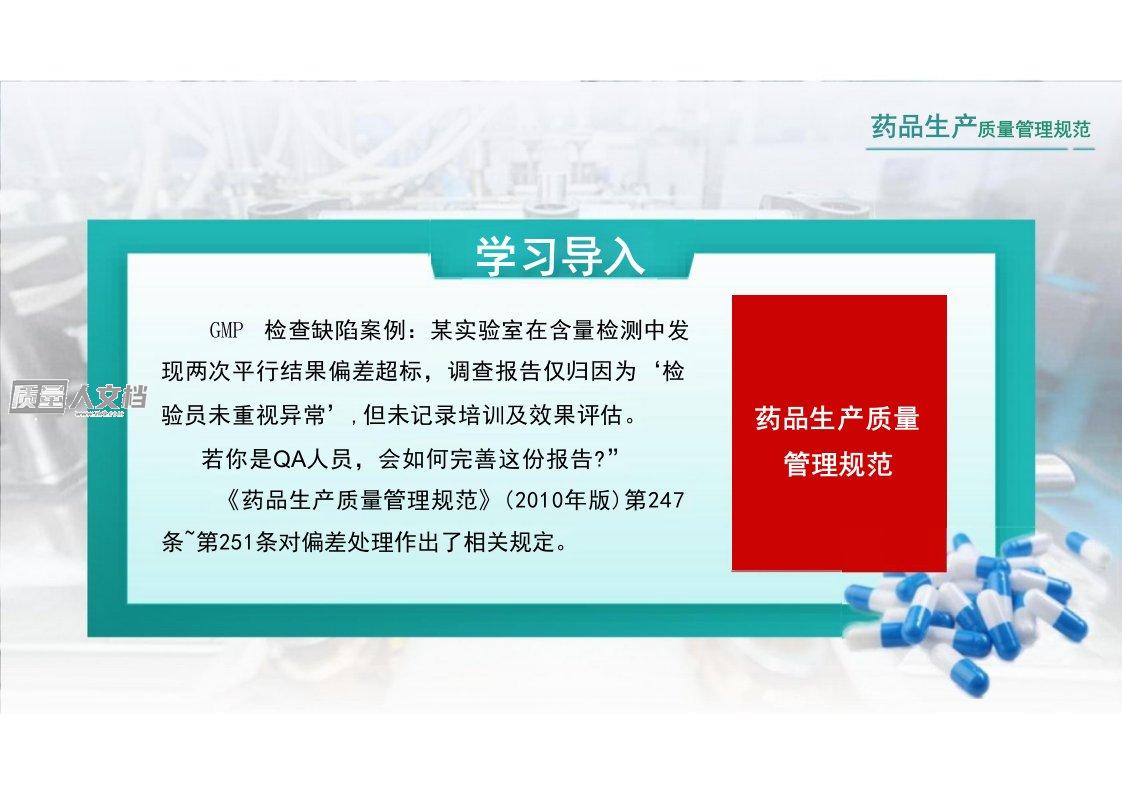 标题:《药品生产质量管理规范》课件——7.5.1 偏差处理概念