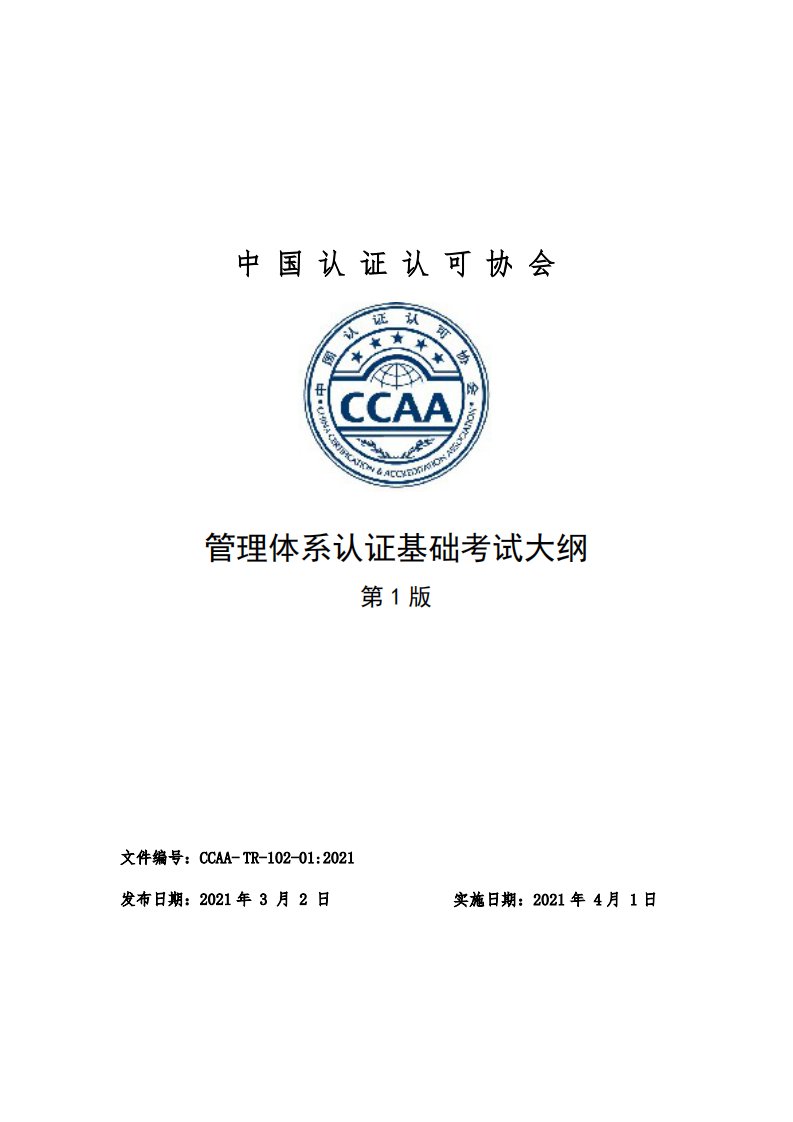 CCAA-TR-102-01 管理体系认证基础考试大纲