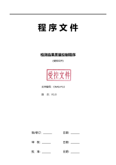 程序文件检测方法的选择与确认程序(受控文件)文件编号:CNAS-P09版次:V1.0制/修订:日期:审核:日期:批准:日期:制/修订履历版次变更摘要制/修订人⑴制/修订日期⑵生效日期1目的规范检测方法选择、制定及确认程序,通过确认并提供客观证据,证实所选用方法可以满足预期用途的特殊要求。当检测方法出现偏离时,能够得到及时有效的控制,保证其检测结果的有效性。2范围适用于客户要求的、检测所采用的方法或经过修订、扩充、超出预定使用范围、出现偏离时,对检测方法的控制、制定及使用前确认。3职责3.1技术负责人3.1.1组织有关人员制定检测方案、主持检测方法的评审并确认;3.1.2组织允许偏离评审的工作,...