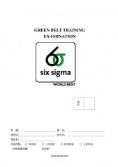 六西格玛绿带知识考试试题(A卷-选择题)一、单项选择(26分):1.六西格玛改进的五个阶段D、M、A、I、C中的D表示。a.Do实施b.Design设计c.Define界定d.Defect缺陷2.在最初的团队会议上,团队应该:a.建立基本的规则和讨论成员的责任b.在项目的目标、范围、计划和时间表上达成一致意见c.确定可行的会议时间和地点d.以上都对3.某零件有2个关键特性,经检验在500个产品中有25个产品出现了50个缺陷,其中,有20个产品经返修消除了缺陷,则该生产过程的RTY是:a.90%b.95%c.99%d.97.5%4.在统计学中,σ主要描述一正态概率分布的。a.平均值b.离散程度c...
