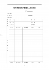 表部门:项目名称:批件号:试验期限:器械名称:器械信息编号型号规格有效期生产厂家生产批号出入帐