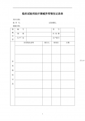 表项目名称:批件号:试验期限:器械名称:器械信息编号型号规格有效期生产厂家生产批号异常情况