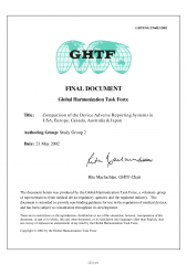 GHTF/SG2/N6R3:2002FINALDOCUMENTGlobalHarmonizationTaskForceTitle:ComparisonoftheDeviceAdverseReportingSystemsinUSA,Europe,Canada,Australia&JapanAuthoringGroup:StudyGroup2Date:21May2002RitaMaclachlan,GHTFChairThedocumenthereinwasproducedbytheGlobalHarmonizationTaskForce,avoluntarygroupofrepresentativ...