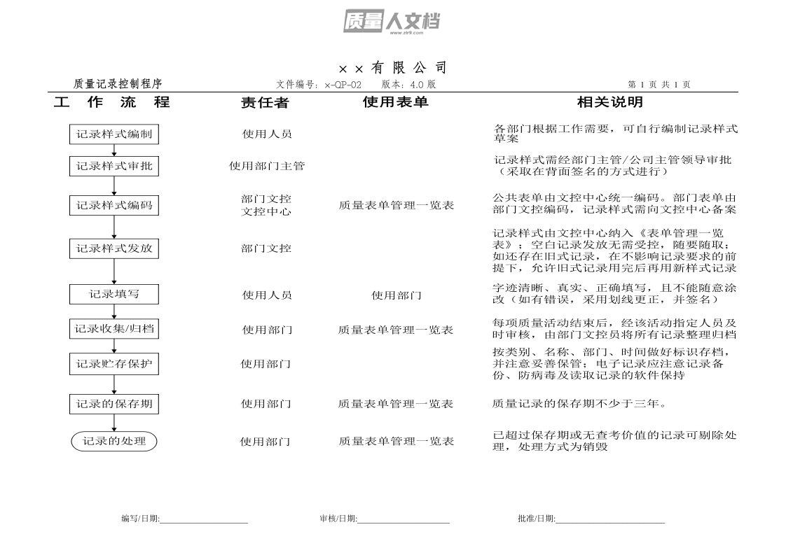 (×-QP-02 质量记录控制程序